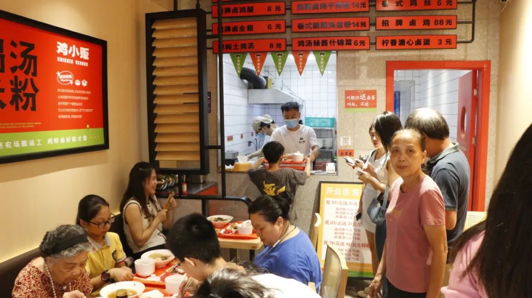 店里主营以土鸡、鸡蛋为肉食的老火鸡汤、秘制卤鸡粉、鸡丝酸辣粉、溏心卤蛋等。开业半个月,众多美食博主、柳州饕客纷纷前来品鉴,并在朋友圈、微博、小红书、抖音等平台极力推荐。这样的美食效应并不仅仅是因为"鸡小贩·鸡汤米粉"餐品的味道和特色,还因为这家小店背后有一个家喻户晓的隐形boss和年轻一代企业家的"野心"。